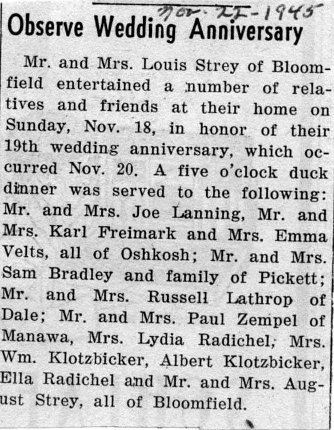 wedding anniversary with a large party Sunday.