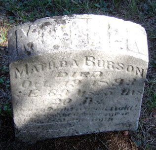 ![]() Field stone marker | ![]() Henry & Mary Jeffers | ![]() Mathilda Burson | ![]() Fanny Burson |