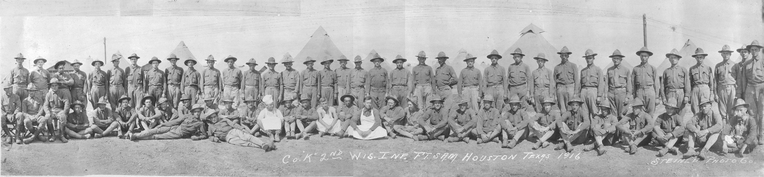 Per Kelly Frey: "The seventh soldier standing in from the right in the photo of Company K 1916 is Clarence Clifford Frey from Beaver Dam. He was the company clerk."