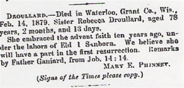 Sister Rebecca Droullard Obituary Feb 14, 1879