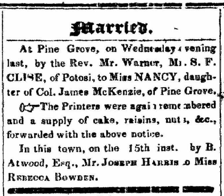Mr S. F. Clise marries Miss Nancy McKenzie