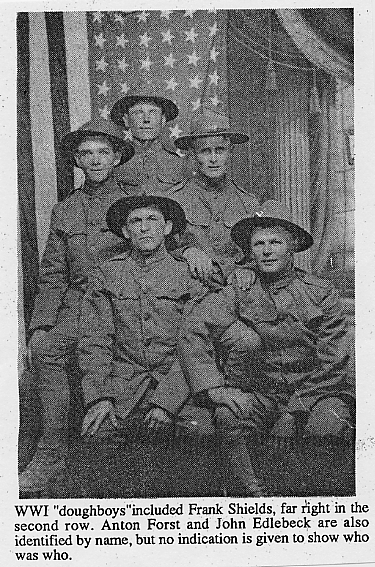 Many of the following images are from a newspaper edition published for the Wausaukee Centennial on August 5, 1987. Thanks to Tracy (Patz) Lentz and Lisa (Edlebeck) Wentland for providing these images. More descriptions will be added as time allows. Links followed by the notation [PDF] require Adobe Acrobat Reader to view/download. You can download the free software from the Adobe Web site. Newspaper clipping about logging sleigh -- The sleigh was crafted by Joseph Spangler for John Bouillon about 1900 and was later leased to Anton Jicha. David Schlies with historic logging sleigh Louis Edlebeck and son George using sleigh to haul gravel Celebrating in style [PDF] -- In this pre-1910 photo Wausaukee's sidewalks were jammed with spectators for the annual July 4 parade. Senator H.P. Bird was the parade marshal. The Bird and Wells smokestack is visible in the distance, and Monroe's log cabin, decked with flags, is at the right. After the parade it was customary to adjourn to Evergreen Park for the day. Farm of Anton Edlebeck [PDF] (Mr. Edlebeck was married to Caroline DeGroot). Wausaukee Band, 1917 [PDF] -- Identified in photo are Louis Polomis, Bud Londo, Pete Polomis, Roy Riley, Andrew Payant, Matt Pelnar, Bert James, Austin Christ, Frank Martin, Vernon Hallenbeck, Seth Ferdon, Loren Nowell. Wausaukee State Bank (est. 1901) and Wausaukee Feed Mill and Elevator [PDF] -- The mill was operated by Amos Christ and George Smith. Before Prohibition [PDF] -- A photographer caught some of the boys tipping a few. Identified in photo are Henry DeGroot, Adam Pleckinger, Anton Edlebeck, Barney DeGroot and Carl DeGroot. Rustic Saloon [PDF] -- Photo of George Underwood's log cabin saloon, complete with a deer carcass hanging at the door. Includes clip from the Wausaukee Independent of 1901 about the amount of beer consumed in the village. Wausaukee High School Class of 1937 Wausaukee High School Class of 1939 WWI Doughboys -- Identified in photo are Frank Shields, Anton Forst, and John Edlebeck.