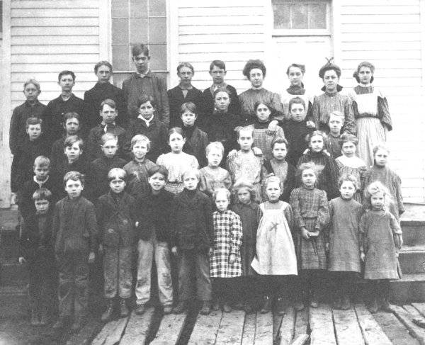 photo of an Orfordville elementary class Two of the students are Mabel and Sophia Synstegard. Abt. 1908