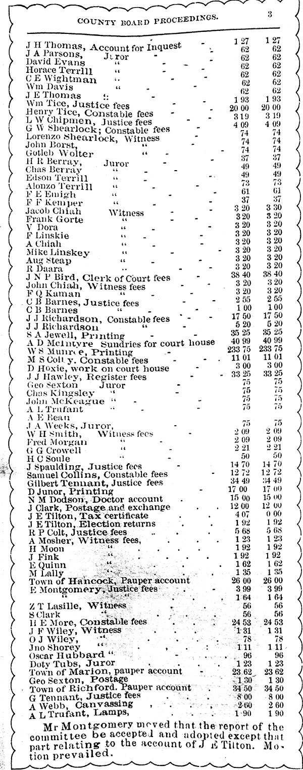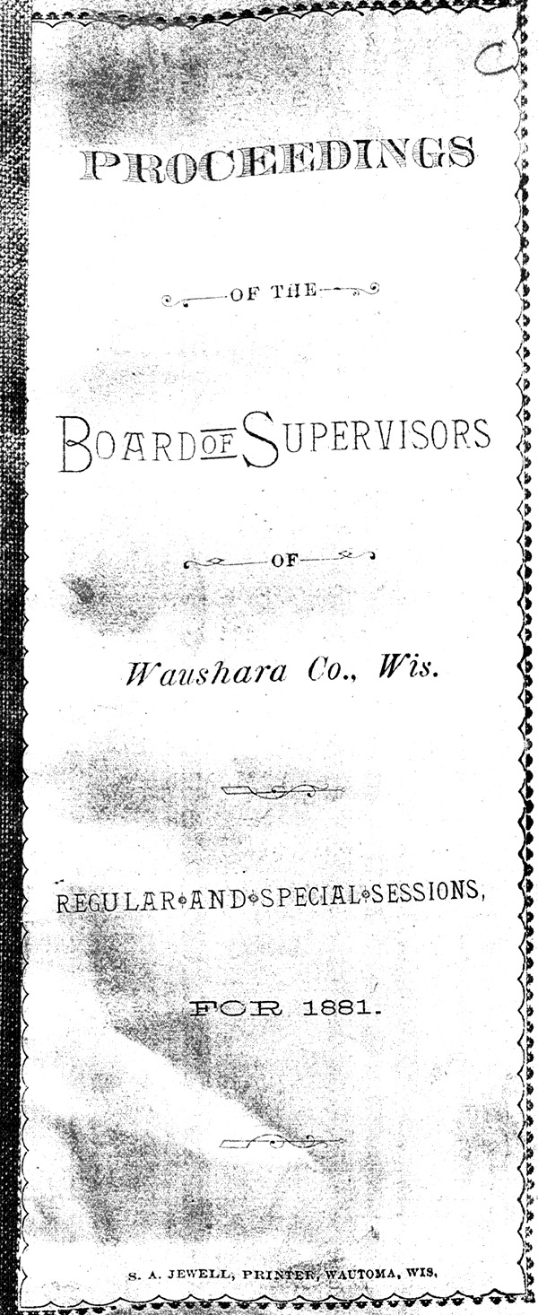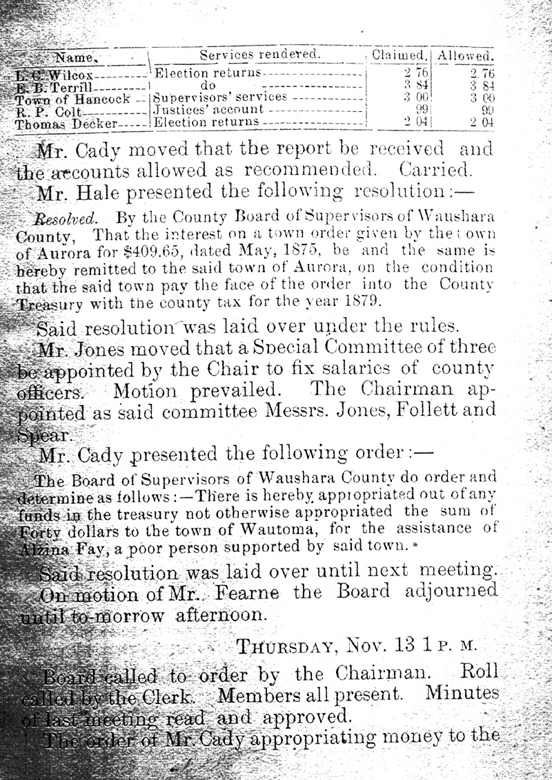 Official Proceedings of the Board of Supervisors of Waushara County1879 AccountsObtained May 2007 from original held at the Wisconsin State Historical Society Library In Madison, Wisconsin