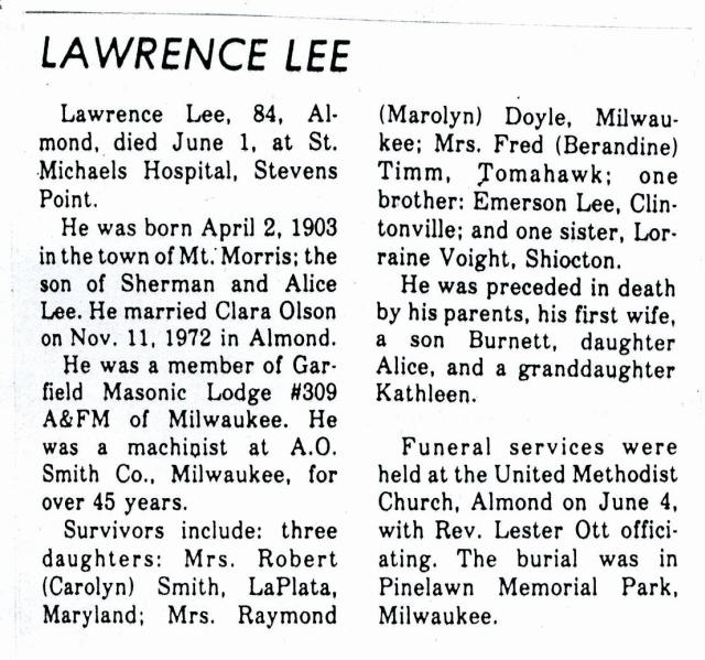![]() Newspaper & date of newspaper unknown 1972 Wallace O. Snell |