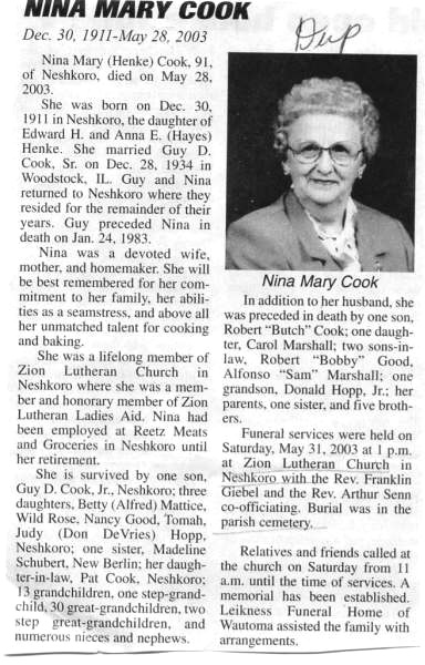 ![]() Newspaper and date unknown 2003 Nina Mary Cook |
