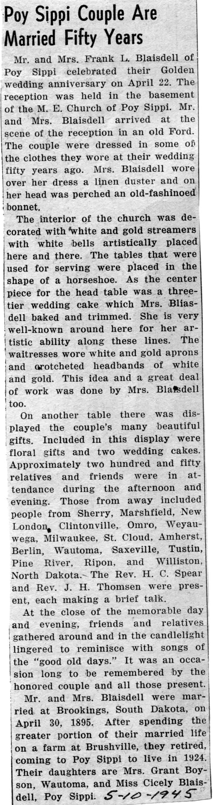 anniversary at their pleasant home in South Hancock. Many lovely bouquets