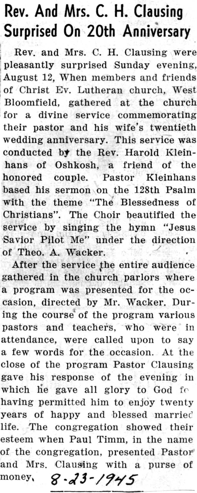 Rev/M C.H. Clausing |