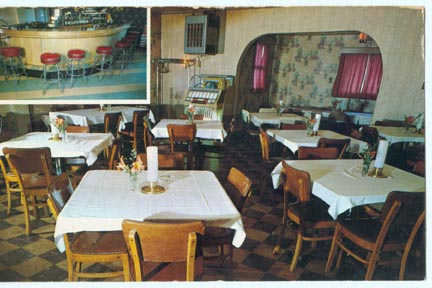 This postcard features the Fishbowl Inn (aka Fernie's),