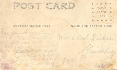 addressed to "Miss Amand Erickson,