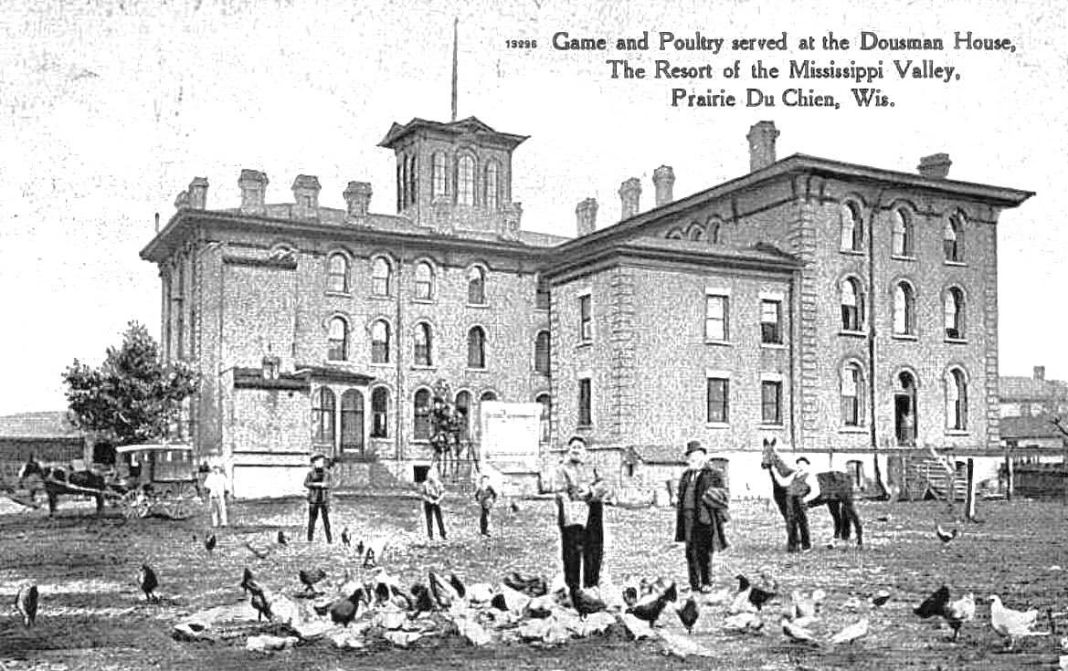 Dousman House The Dousman Hotel, is a historic hotel located at the intersection of Fisher Street and River Road in Prairie du Chien, Wisconsin. The hotel was built in 1864–65 to serve railroad and steamboat travelers coming to the city. (St. Feriole Island) Fisher Street - The Railroad House was touted as the premier hotel on the Upper Mississippi when it was built by the railroad in 1864. Since Hercules Dousman owned so much of the railroad stock, the hotel was renamed after him in 1867. In the 1940s it was converted to a meat packing plant and later served as a warehouse. The property is undergoing redevelopment. National Historic Landmark and National Register of Historic Places.