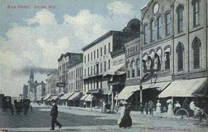 Early postcard of Racine Main Street |